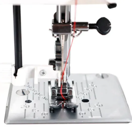 Enhebrador automático de aguja para facilitar la carga de hilo.
